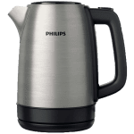 کتری برقی فیلیپس مدل HD9350کتری برقی فیلیپس مدل HD9350 دارای بدنه ای از جنس استیل ضدزنگ است و طراحی زیبایی دارد. این کتری با داشتن شبکه های فیلتری کوچک، هر گونه رسوب را از آب میگیرد تا آب جوش آمده از کیفیت بالاتری برخوردار باشد. از نظر ایمنی نیز این محصول دو عملکرد مختلف دارد. قطع کن هنگامی که اب کمی در آن باشد و یا آب به جوش بیاید، عمل میکند و استفاده از آن را بی خطر و ساده می کند. در کتری برقی فیلیپس مدل HD9350 چراغ نشانگری برای نشان دادن روشن/خاموش بودن دستگاه تعبیه شده است. در کنار کتری نیز با وجود نشانگر میزان آب موجود در آن، قابل رویت می باشد. این کتری که توان 2200 واتی دارد، دارای حجم 1.7 لیتری میباشد و در زیر کفی 360 درجه ای آن، محفظه ای برای نگهداری سیم برق تعبیه شده است. در پایان قابل ذکر است که دستگیره این کتری، به صورت ارگونومیک طراحی شده است و هنگام استفاده از دست شما لیز نمیخورد.